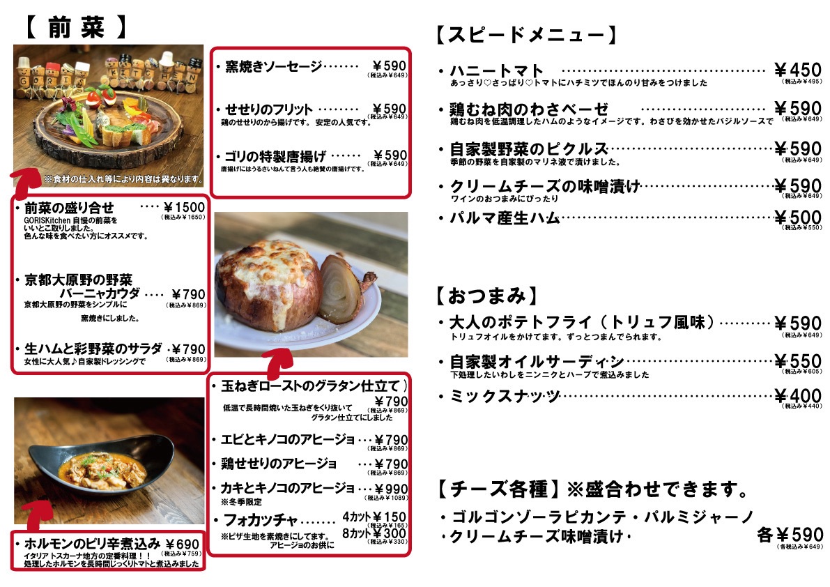 メニューは予告なく変更あることがございます。